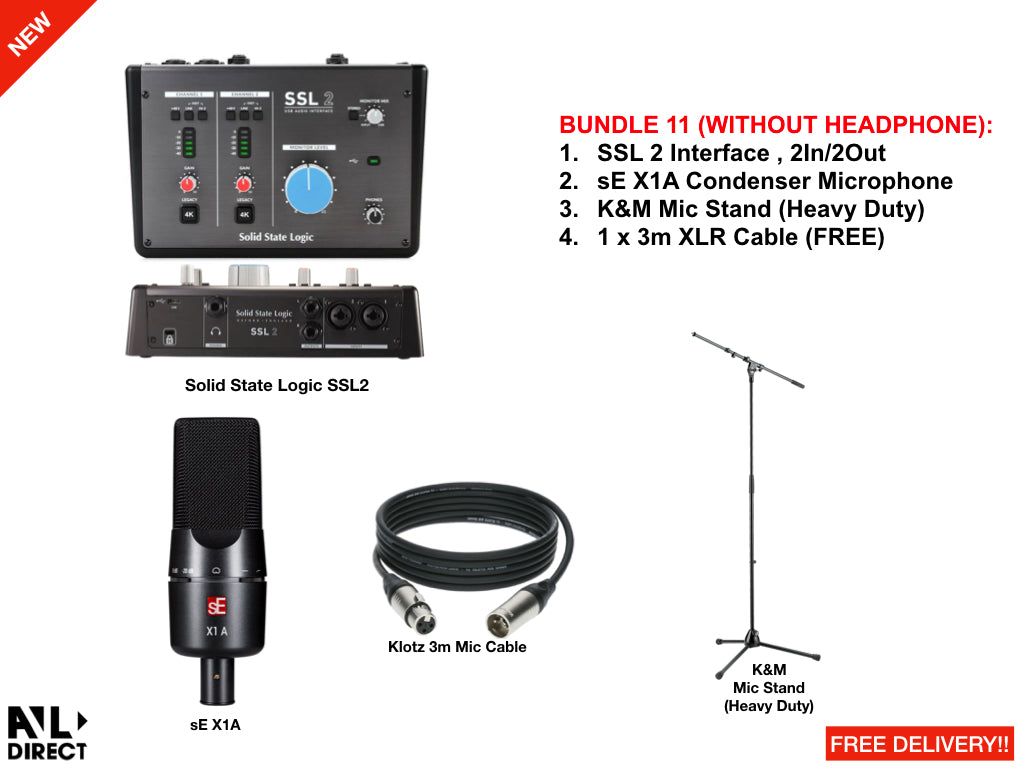 We combine sE Electronics best microphones with Solid State Logic Interface, along with a 3m XLR Cable that comes for FREE. Ensuring your microphone doesn't fall off, we bundle it with a heavy duty boom microphone stand from K&M. Lastly giving you the well known headphones from Sennheiser.